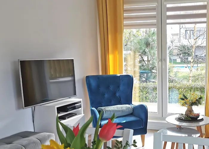 Apartamenty Wybrzeze Laguna lägenhet ligger inom 2,5 km från Park Linowy, och erbjuder en rad bekvämligheter, inklusive utomhusbassäng, gratis parkering och uppvärmd bassäng. Boendet placeras inom 5 minuters bilresa från Plaza w Ustroniu Morskim.